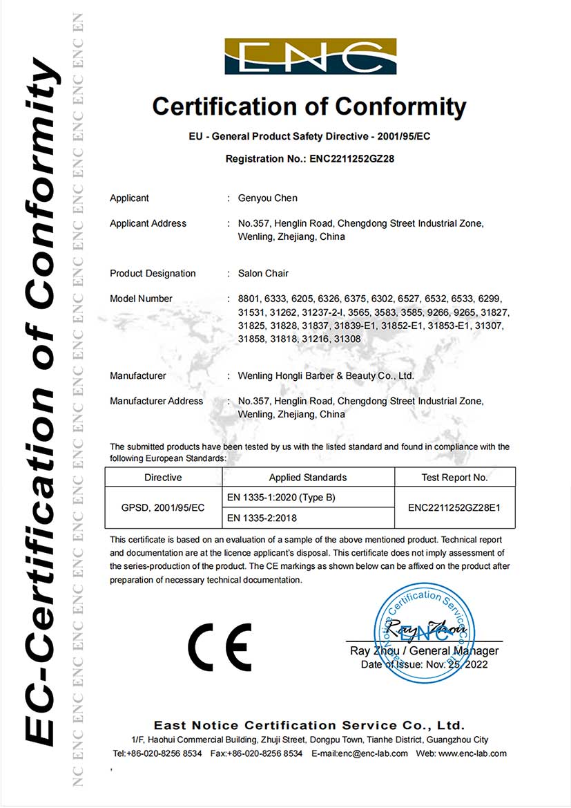 Wenling Hongli Barber & Beauty Co., Ltd. is a corporation that professionally manufactures gentleman barber chairs, ladies’ barber chairs, styling chairs, shampoo chairs, and fitting series. Our factory is providing comfortable and luxury products with fashion styles for customers all the time. Sticking to the management principle of “Sincerely, Excellence quality, Creating”, and the service principle of “Always taking charge of products, doing our best to satisfy the customer’s requirements”, we have won a good reputation from domestic and overseas customers. With humanized designs and environment protection, referring to the new styles of Europe, America, Japan, Hong Kong so on, we are making great efforts to create a suitable fashion. We wish our professional attitude and creations can win your approbation and trust.